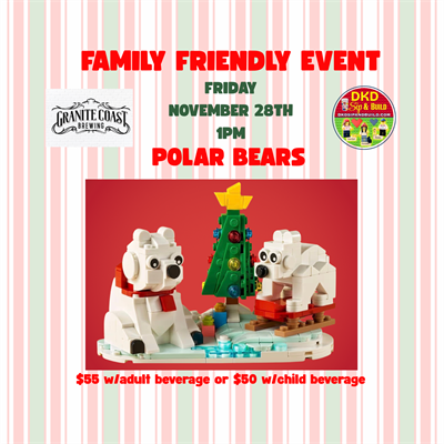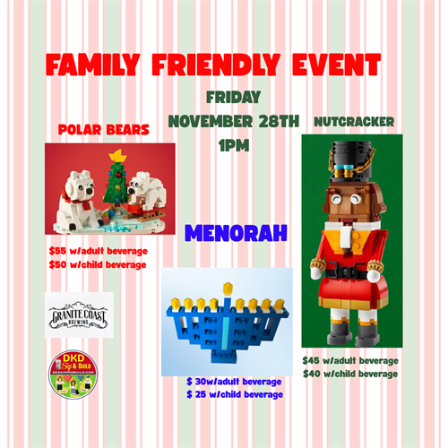 Bring the whole family down to Granite Coast Brewing for a DKD Sip and Build FAMILY FRIENDLY LEGO